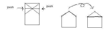 3. You have made a little tent. Push the sides in and the card will collapse to form a triangle (arrowhead?). To help your visualization skills, undo this step and imagine in 'your mind's eye' the sides coming in to form a flat arrowhead. Flip the model over.