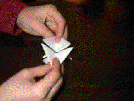 will form tabs. Pick up a white unit. Holding it with the bottom of the four